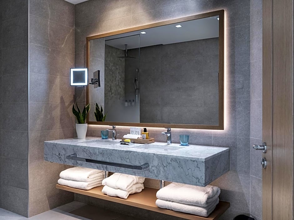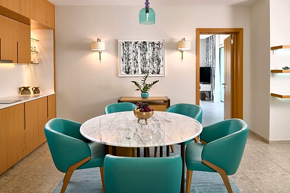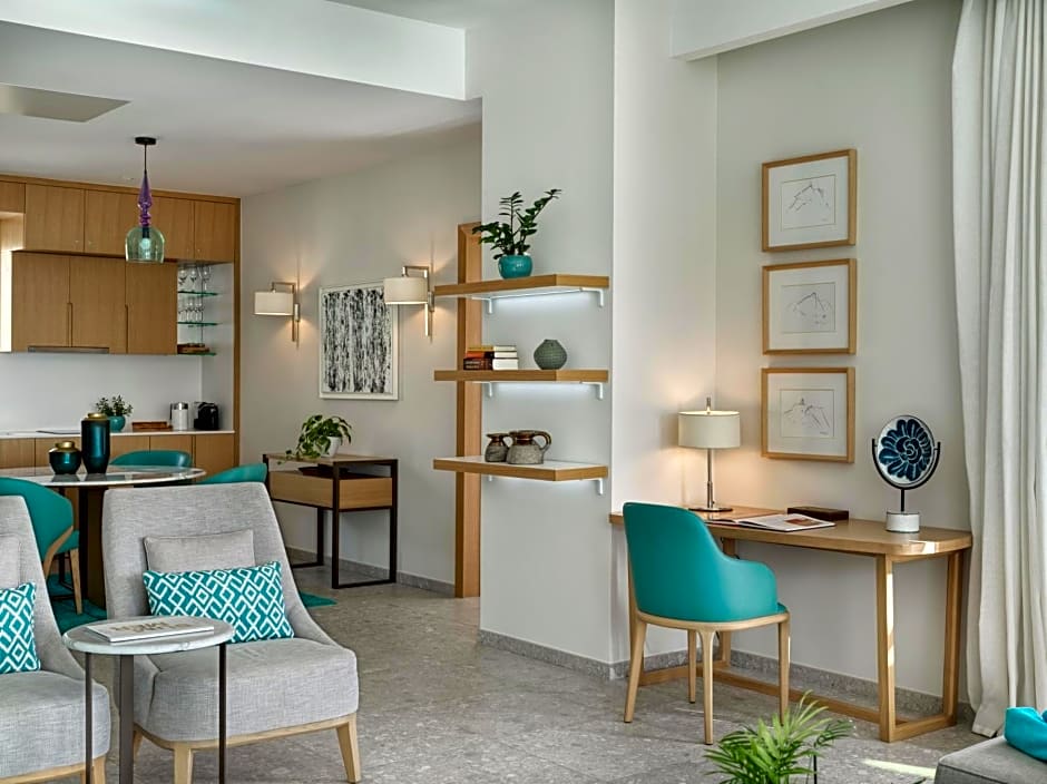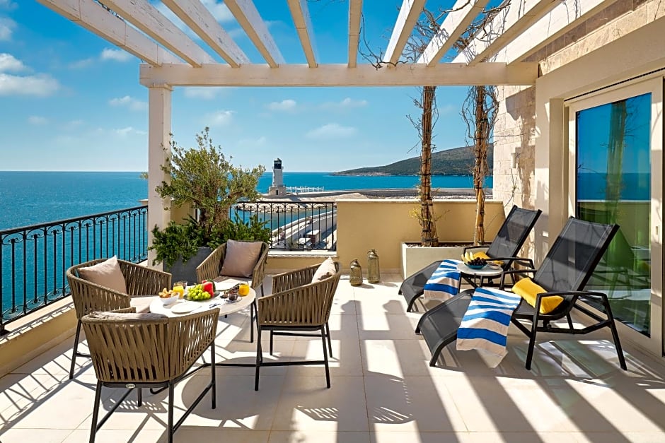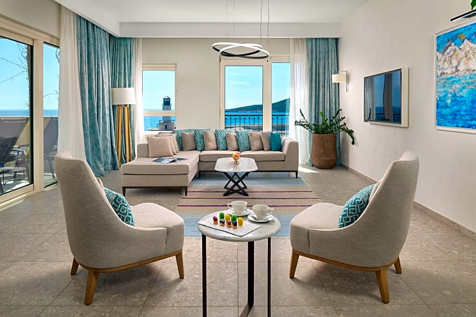 Featuring a private entrance, this spacious suite also is consisted of of 1 bedroom, a seating area and 1 bathroom with a bath or a shower and a hairdryer. The fully equipped kitchenette features a refrigerator, a dishwasher and kitchenware. The air-conditioned suite offers a flat-screen TV with satellite channels, soundproof walls, a mini-bar, a tea and coffee maker as well as sea views. The unit offers 1 bed.